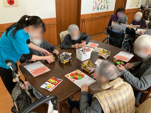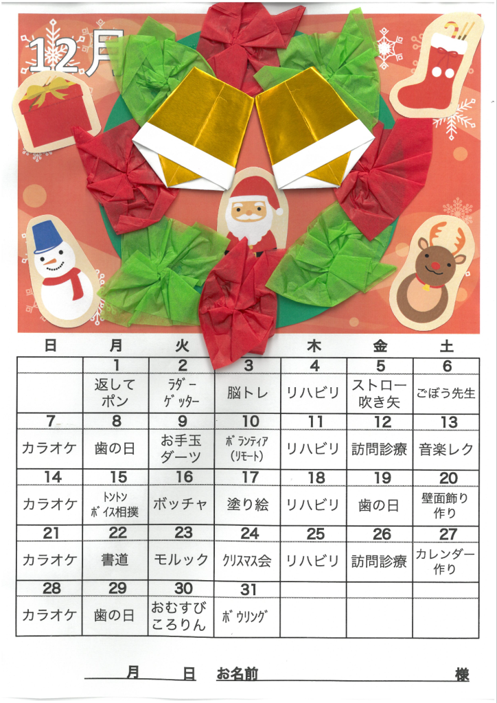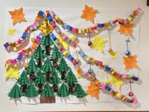 たくさんの飾りを付けて頂き、賑やかなクリスマスリースが完成しました。