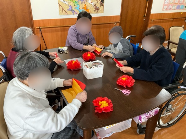 お花紙を使って八重の椿を作って頂きました。